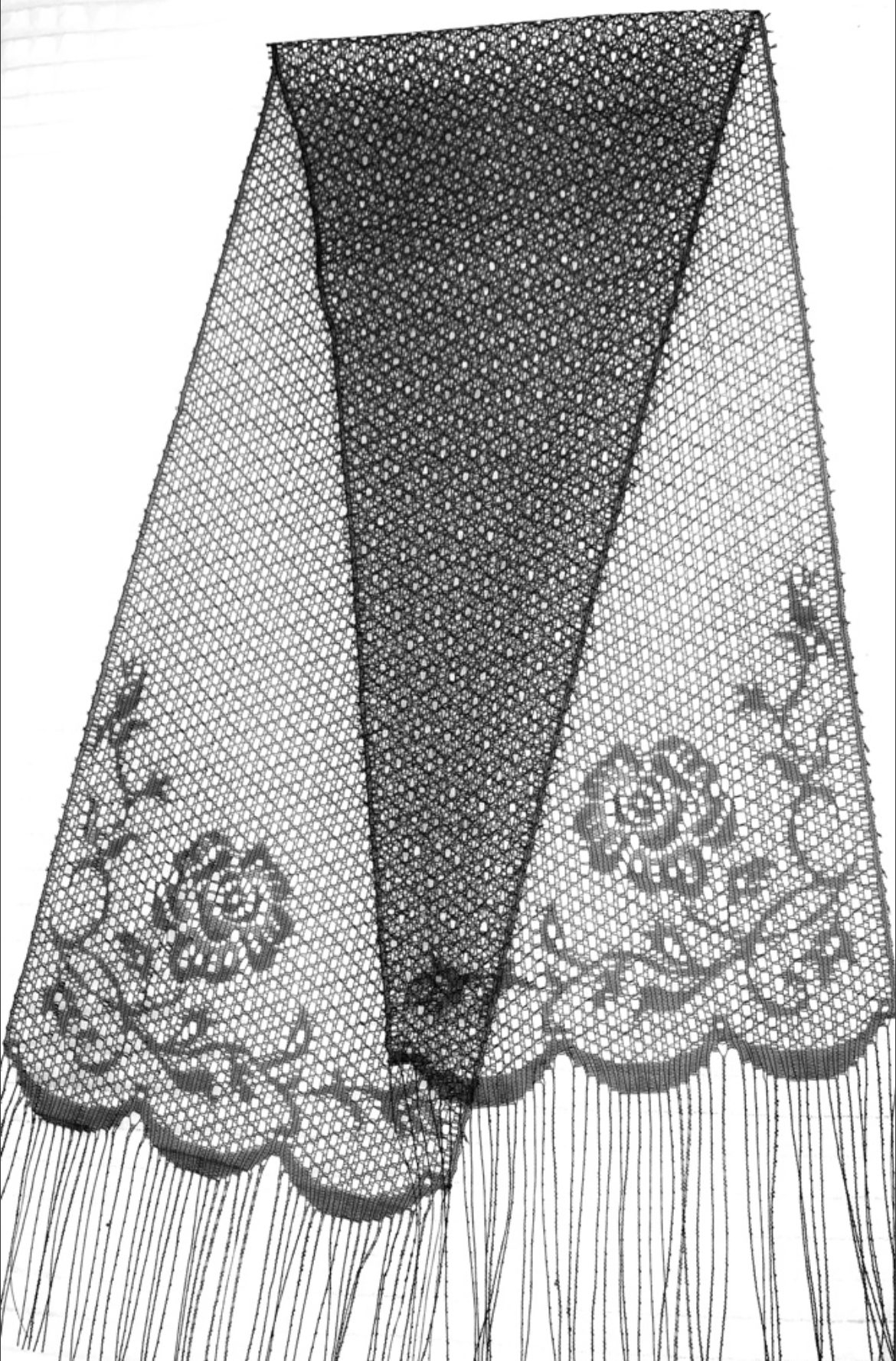 Шарф гипюровый черный/белый, из гардинного полотна с плетением. Размер 150х30см. 10шт. в упаковке.